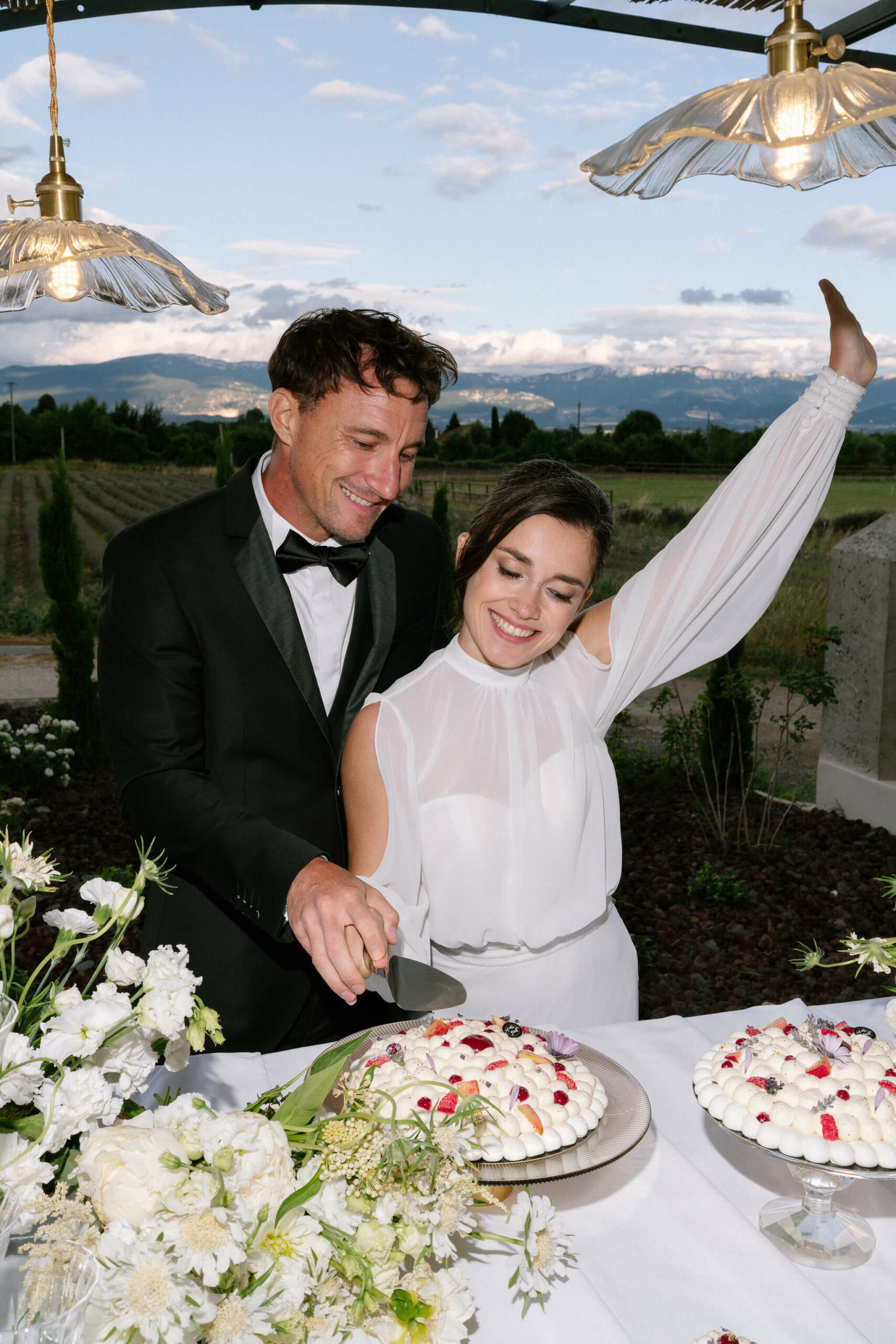 Le couple est mis au centre de l’attention sous le regard du photographe. L’amour rayonne et illumine les visages. Quelques clichés des moments prisés d’un mariage : le cocktail à la lavande, le dessert avec une délicate pavlova, la fontaine à champagne… autant d’instants de complicité, de rires et de partage.